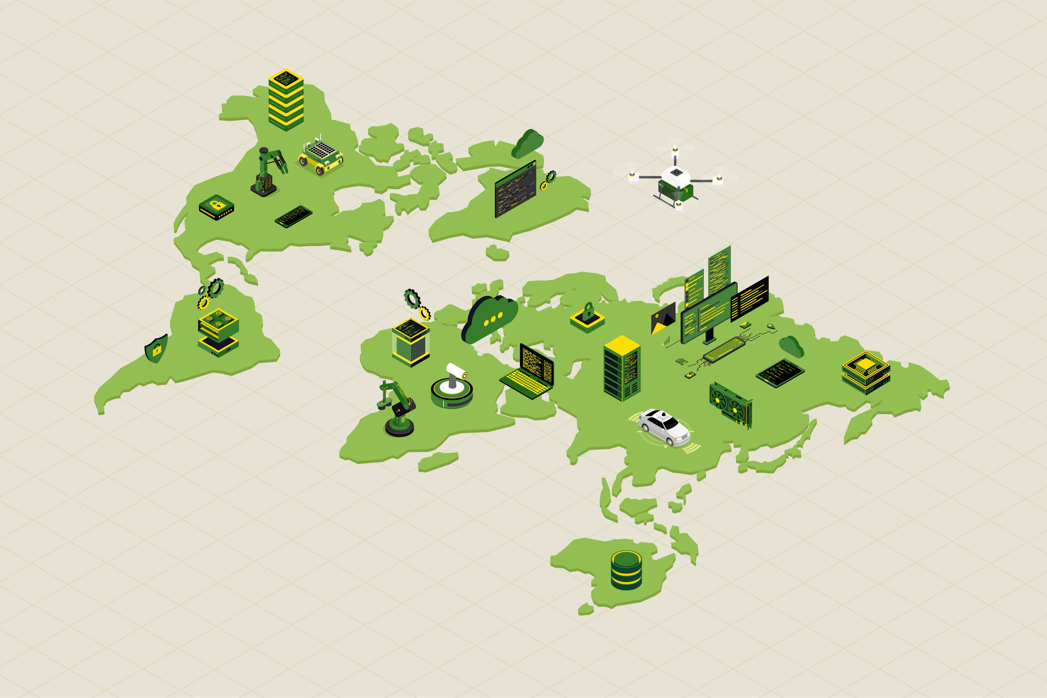 With no existing assets, I designed a map that bridged into the isometric farm scene, incorporating advanced technology elements that animated over time to support the voiceover. The map then seamlessly zoomed into the farm scene, connecting the global context to the local on-the-ground story.