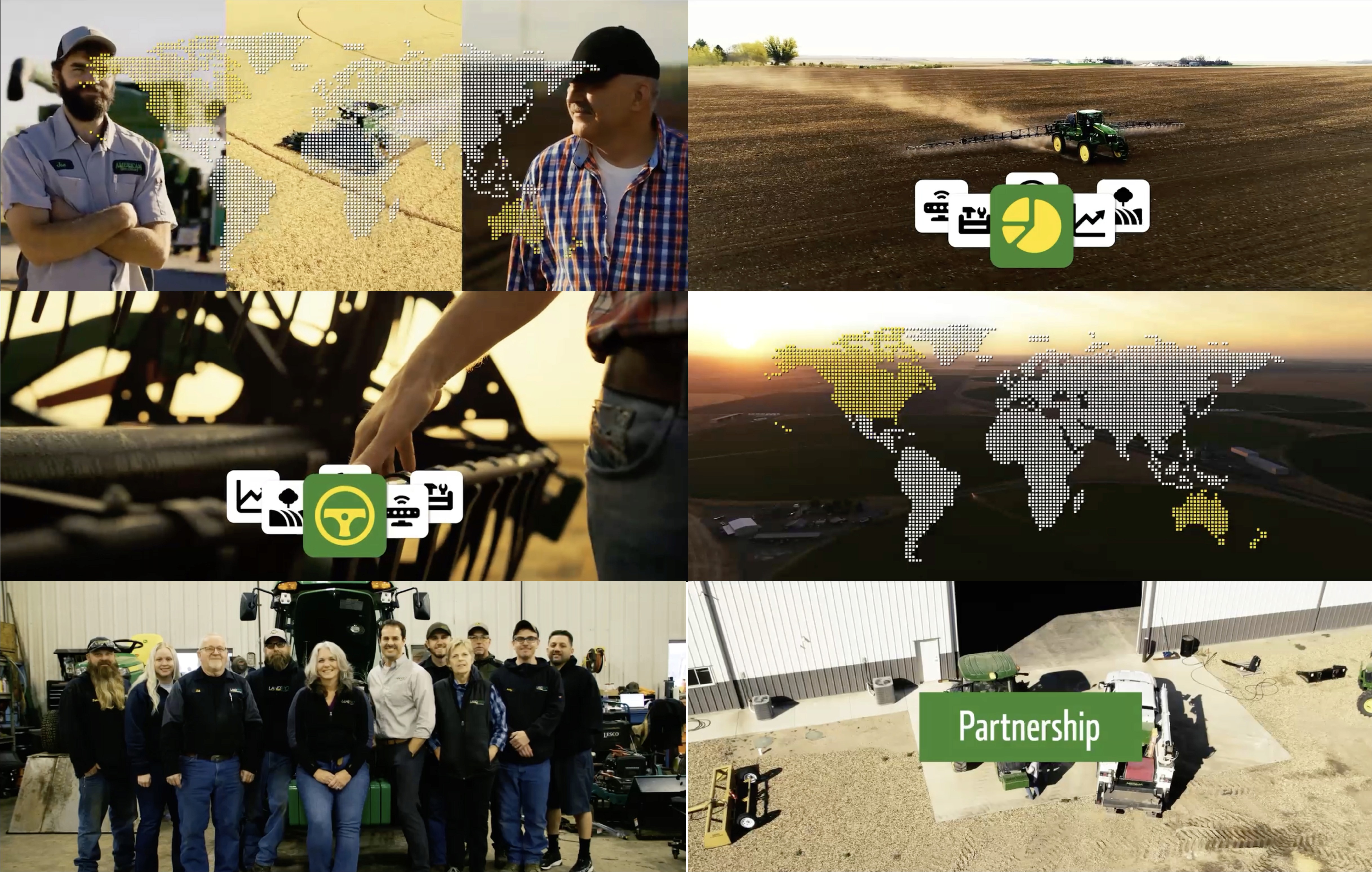 I created custom icons and illustrations to overlay on video footage of fields, John Deere workers, and equipment. The visuals were designed to align with the John Deere brand style without pre-existing assets and to highlight key information and processes. This approach enhanced the footage while maintaining a cohesive and professional visual identity. View the video here.